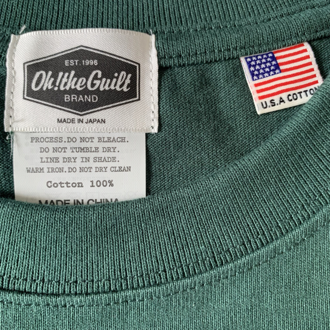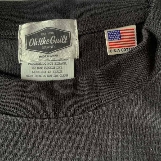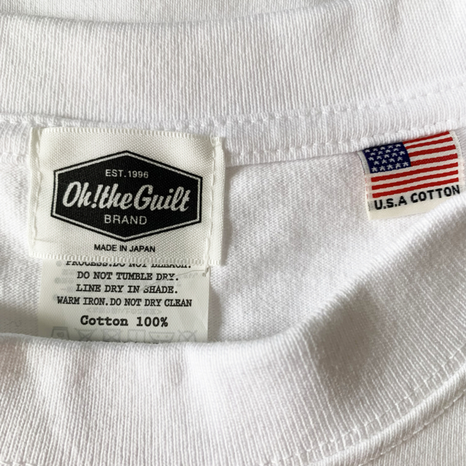 Oh!theGuilt×DF.SQEZのコラボレーションに新型T-SHIRTが登場! USコットン、米綿100%使用(オープンエンド糸)。 アメリカで生産される綿花の特徴は、中国綿などと比べて油分が少なく、独特のシャリ感(乾いた肌ざわりで硬めの質感)があります。